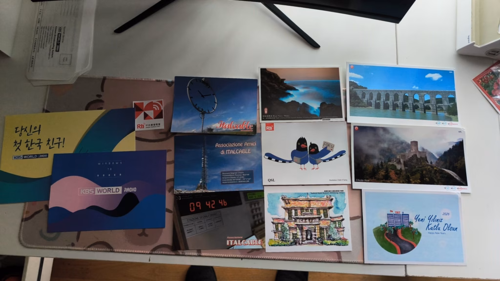 Erik explicó para los no iniciados qué son las tarjetas QSL y por qué son tan especiales: se trata de confirmaciones oficiales que envían las emisoras cuando alguien logra recibir su señal. Para muchos aficionados, representan un recuerdo único del contacto con estaciones de diferentes partes del mundo.