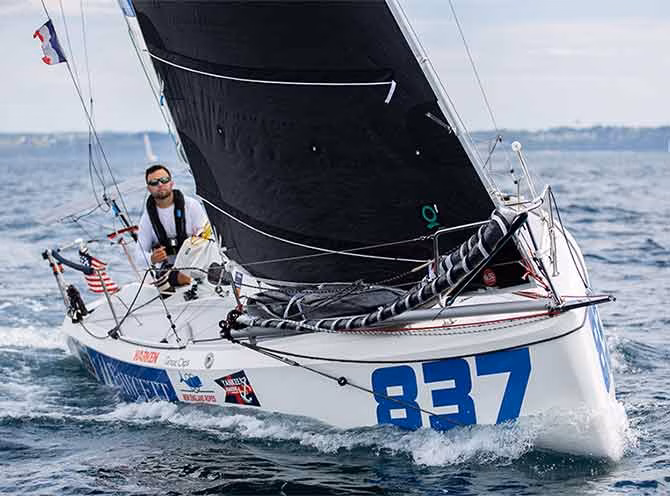 La regata bienal Mini Transat que se realiza en solitario comenzó el domingo 21 de septiembre con 90 embarcaciones pequeñas (6,50 m) , zarparon desde Les Sables d’Olonne, Francia, con destino a Santa Cruz de la Palma, Islas Canarias, en la primera etapa.