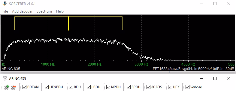 Entra en el menú «Add decoder» de la parte superior y selecciona modo PSK y luego ARINC 635 Y haz «enter» para aceptar el modo.