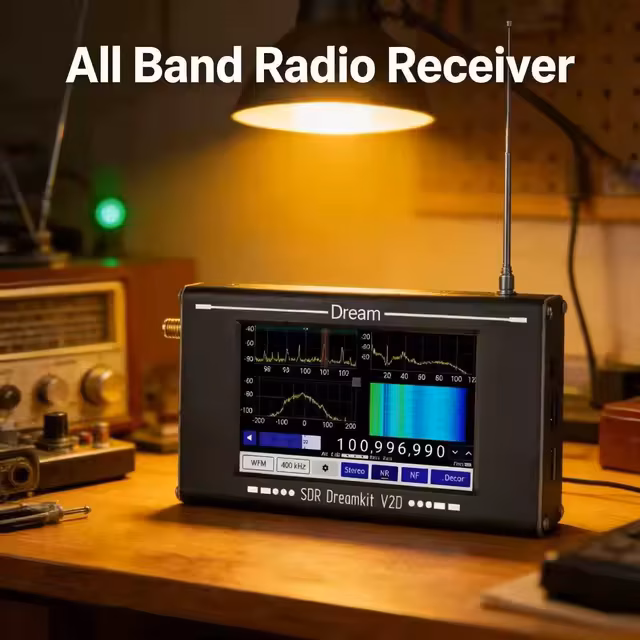 El Dreamkit V2D es un receptor de radio SDR (Software Defined Radio) portátil con cobertura de 100 kHz a 2800 MHz, con pantalla integrada, batería interna y un amplio abanico de modos y filtros. No se trata de un simple receptor FM o AM, sino de una herramienta versátil tanto para radioescucha general como para exploración DX y experimentación SDR avanzada.