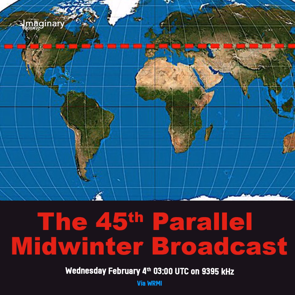Y el miércoles 4 de febrero de 2026 a las 0300 UTC en 9395 kHz a través de WRMI te traemos otro viaje a mediados del invierno al Paralelo 45 desde nuestro Laboratorio de Montaña Secreta. Estamos llamando a todos los oyentes, arriba y por debajo del paralelo 45 para una expedición musical dx al salvaje Norte.